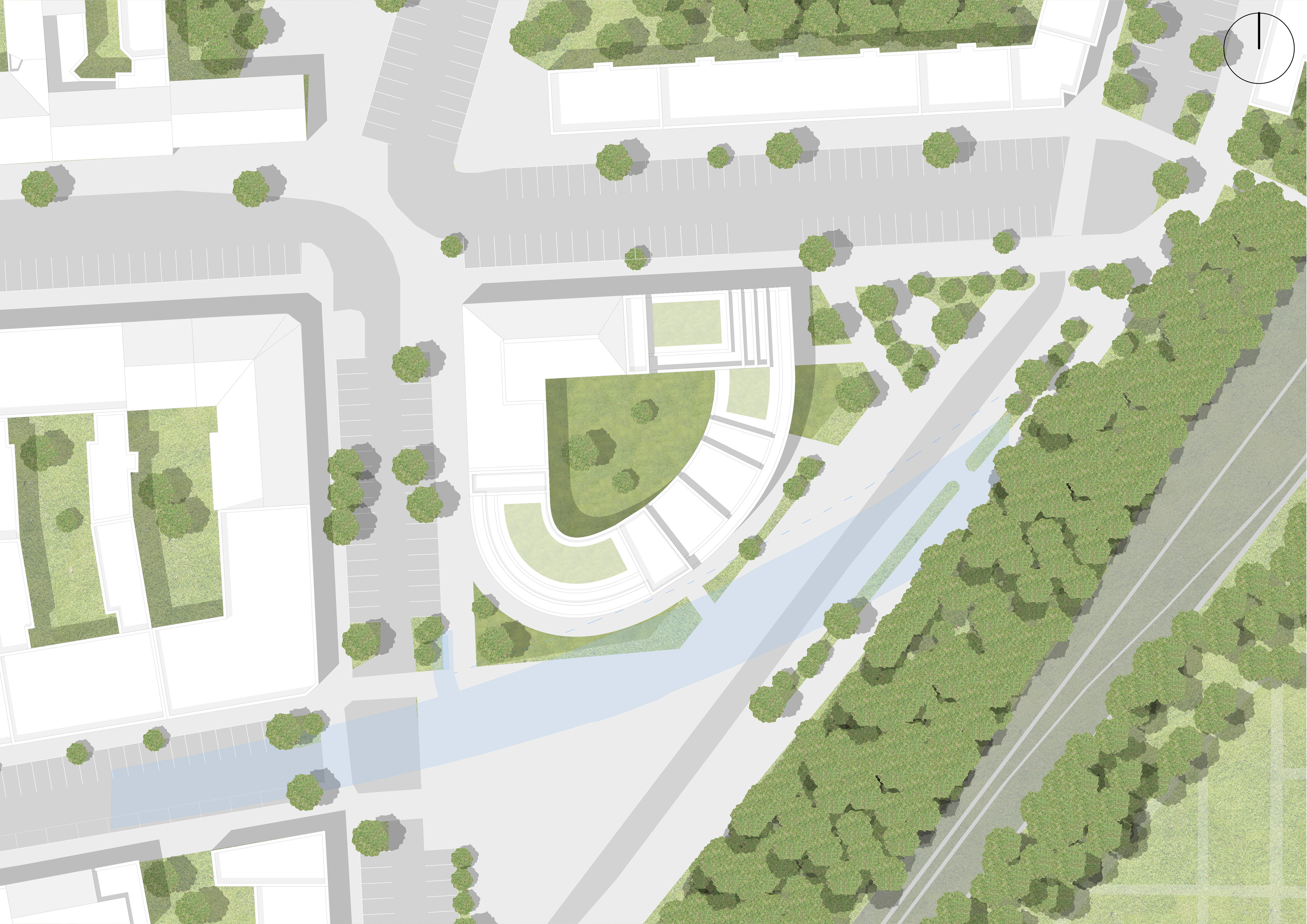 Das geplante Grundstück befindet sich in Berlin Tempelhof-Schöneberg. Auf dem Grundstück befindet sich derzeit ein Gebäude des evangelischen Gemeindezentrums der Silasgemeinde, welches eine kleine Kirche im Erdgeschoss beinhaltet und die evangelische Silas-Kita. Außerdem ist nordwestlich ein Wohngebäude, dieses hat eine für Berlin typische Eckbebauung, die auf Grund von Wohnungsmangel öfter zu einer Blockbebauung erweitert werden. Die U-Bahn grenzt knapp im Südwesten das Grundstück, weshalb in der Planung berücksichtigt werden musste, dass eine Abstandsfläche von 3 Meter einzuhalten ist. Von dem Bauherrn war vorgegeben ein Hospiz und Wohnungen zum betreuten Wohnen zu entwerfen, gegebenenfalls auch Gewerbeflächen. Die geschlossene runde Form schmiegt sich dem Grundstück an und, imitiert eine Blockbebauung, durch die runde Form ist das Gebäude aber einzigartig und bekommt auf diesen zentralen Platz auch einen höheren Stellenwert.