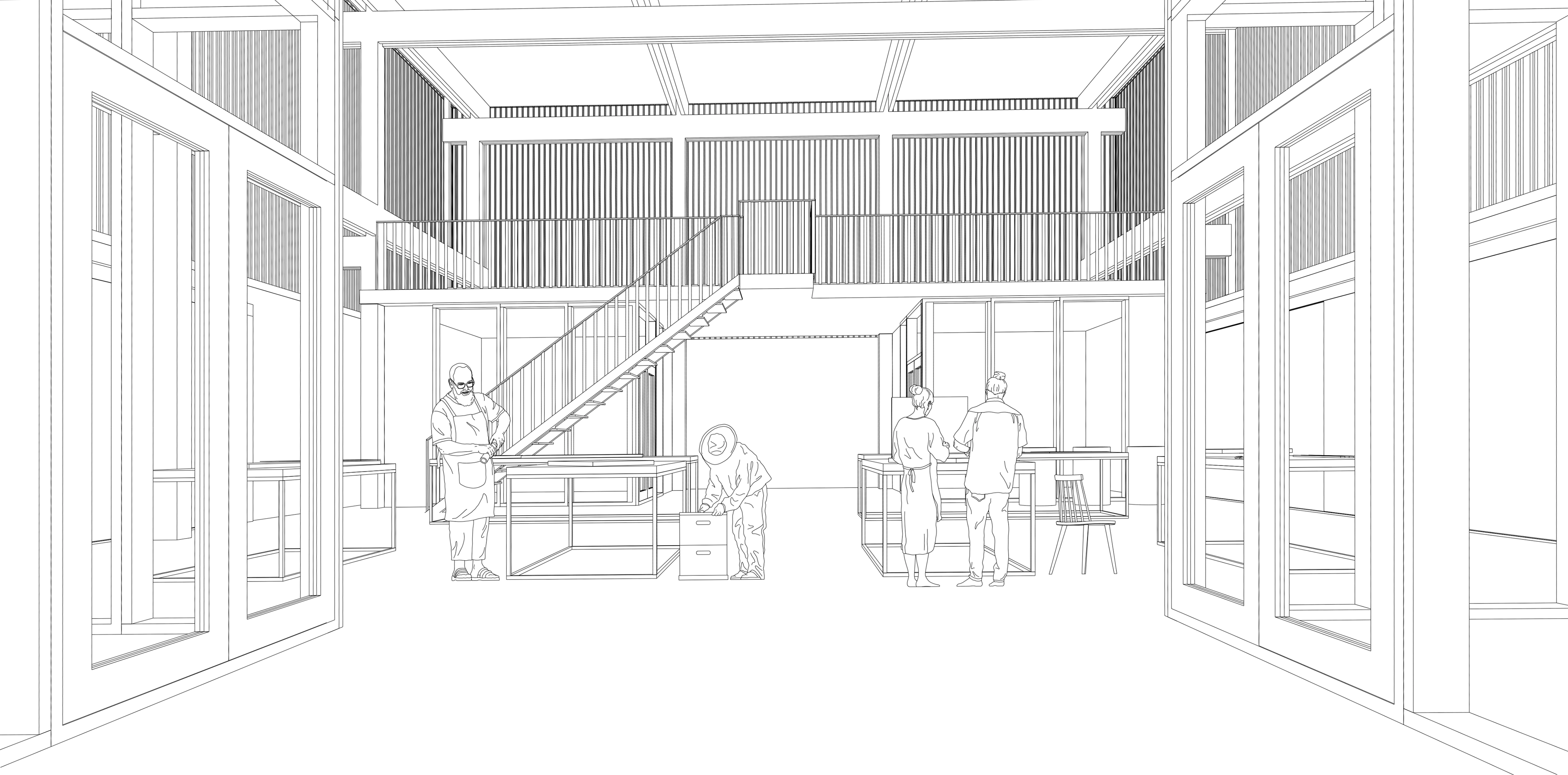 Innenraumperspektive Werkstatt