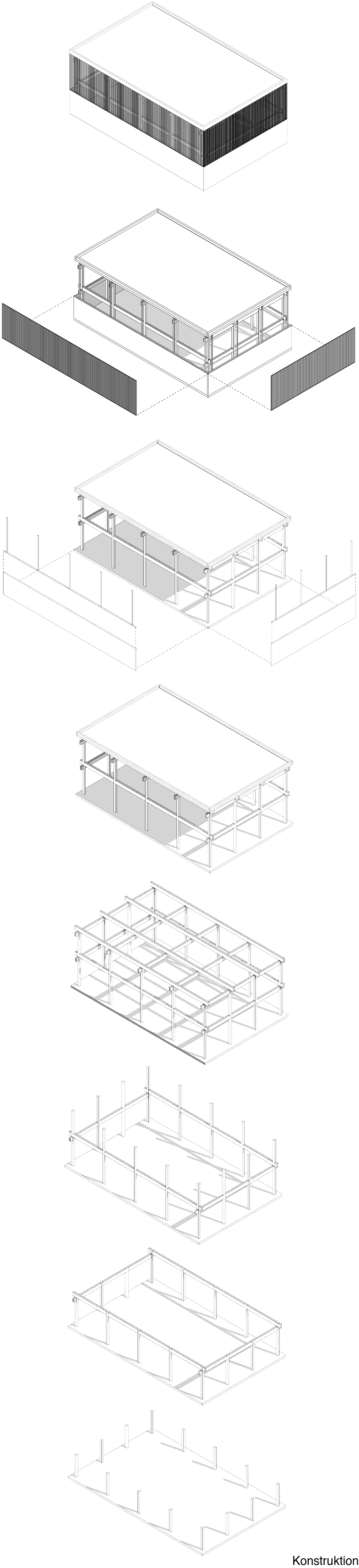 Der Entwurf „Polypark Kreuztal“ entstand, um eine neue Stadthalle nach dem Brand der alten zu entwerfen. Der Standort nahe dem Bahnhof und entlang des Weges zur Innenstadt schafft eine wichtige Verbindung zwischen beiden. Aufgrund der großzügigen Fläche des Grundstücks wurde entschieden, mehrere Nutzungen zu integrieren. Die Planung erfolgte auf Basis eines quadratischen Rasters, das als Grundlage für die Anordnung der Gebäude diente. Alle Bauwerke folgen einem einheitlichen gestalterischen Konzept: Das Gestaltungskonzept der Hallen lehnt sich an die zahlreichen im Siegerland stehenden Industriehallen an, die das Projekt mit den pragmatischen Raumkonzepten Mies van der Rohes zu verbinden versucht.
